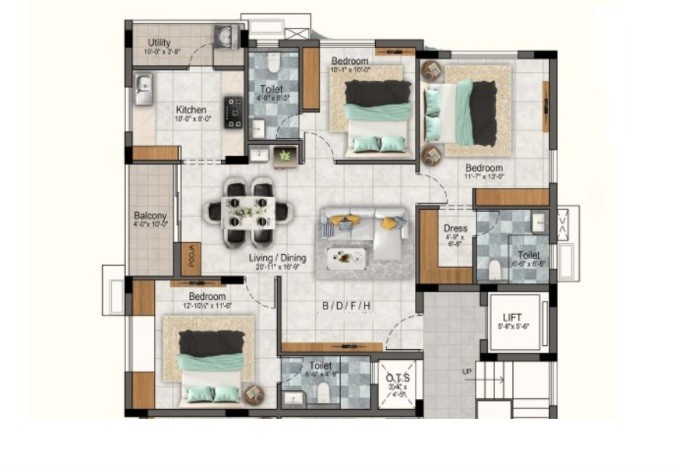 The project offers DG power backup for both common areas and individual apartments, ensuring uninterrupted convenience. With excellent ventilation and abundant natural airflow, each home provides a fresh, bright, and welcoming atmosphere.