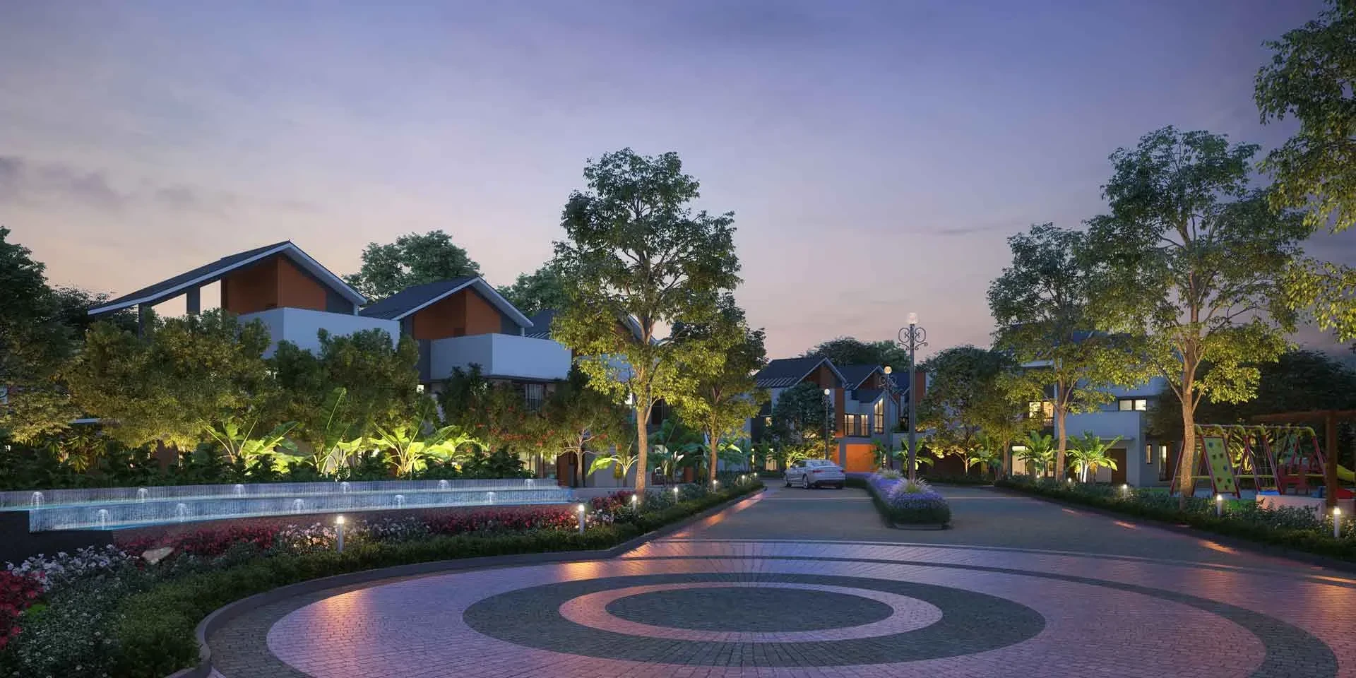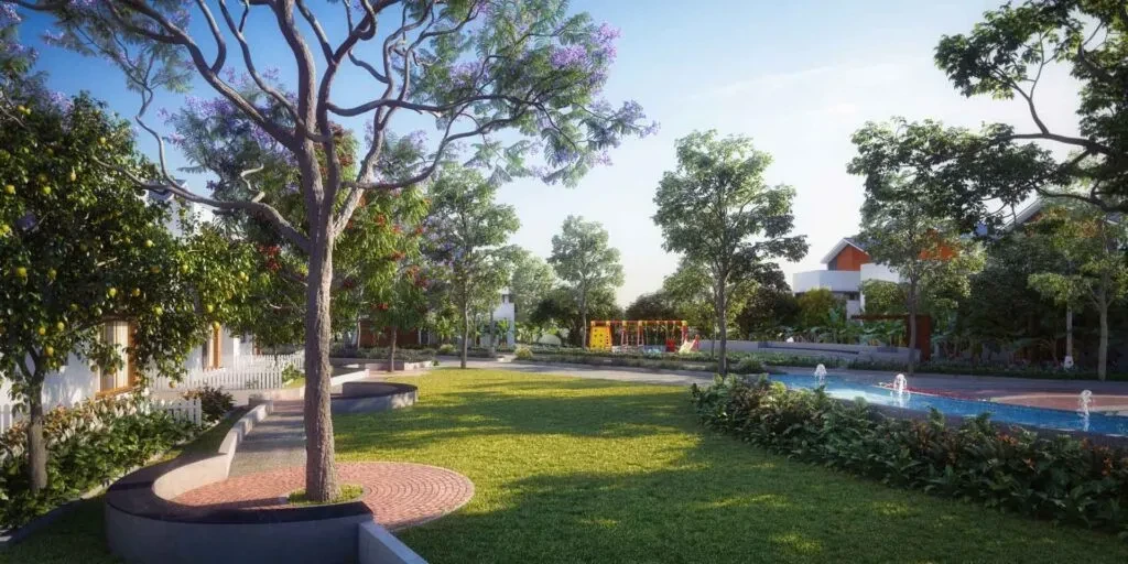 - Project Concept: The core idea is to blend luxurious living with a natural environment. The development is spread over 18 acres and features extensive landscaping with indigenous fruit orchards (mango, lemon, etc.) and a private backyard for every villa.