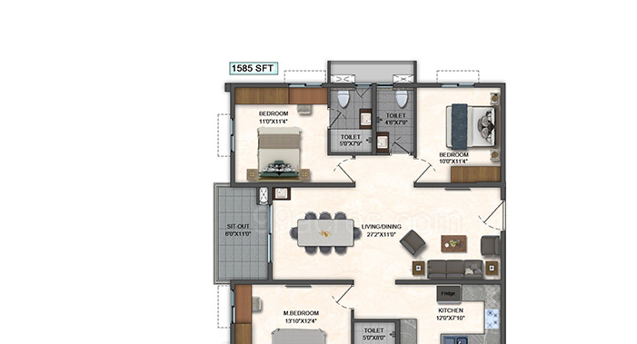 Other Bedrooms, Living, Dining & Kitchen: Premium quality vitrified tiles of reputed brand