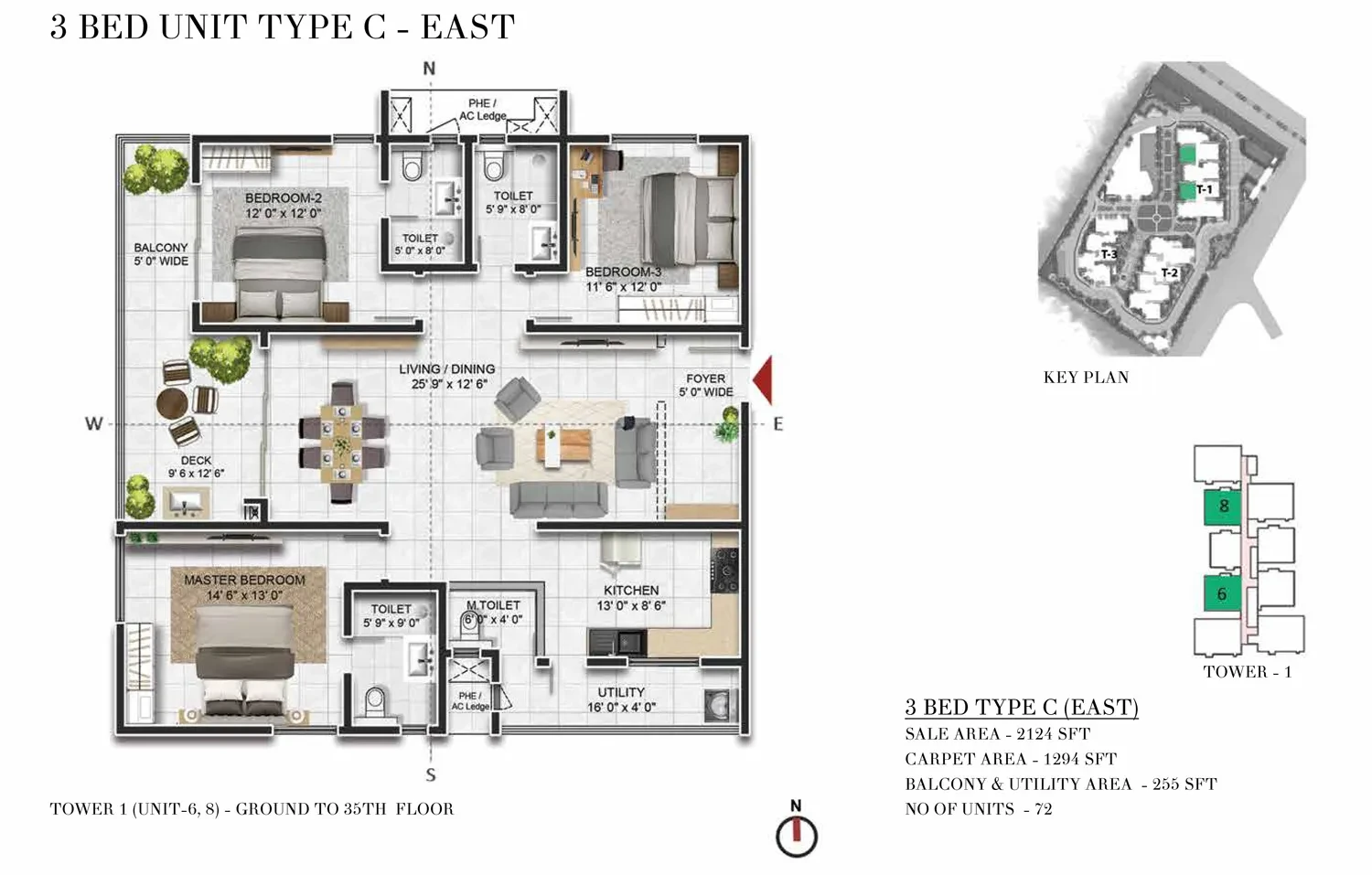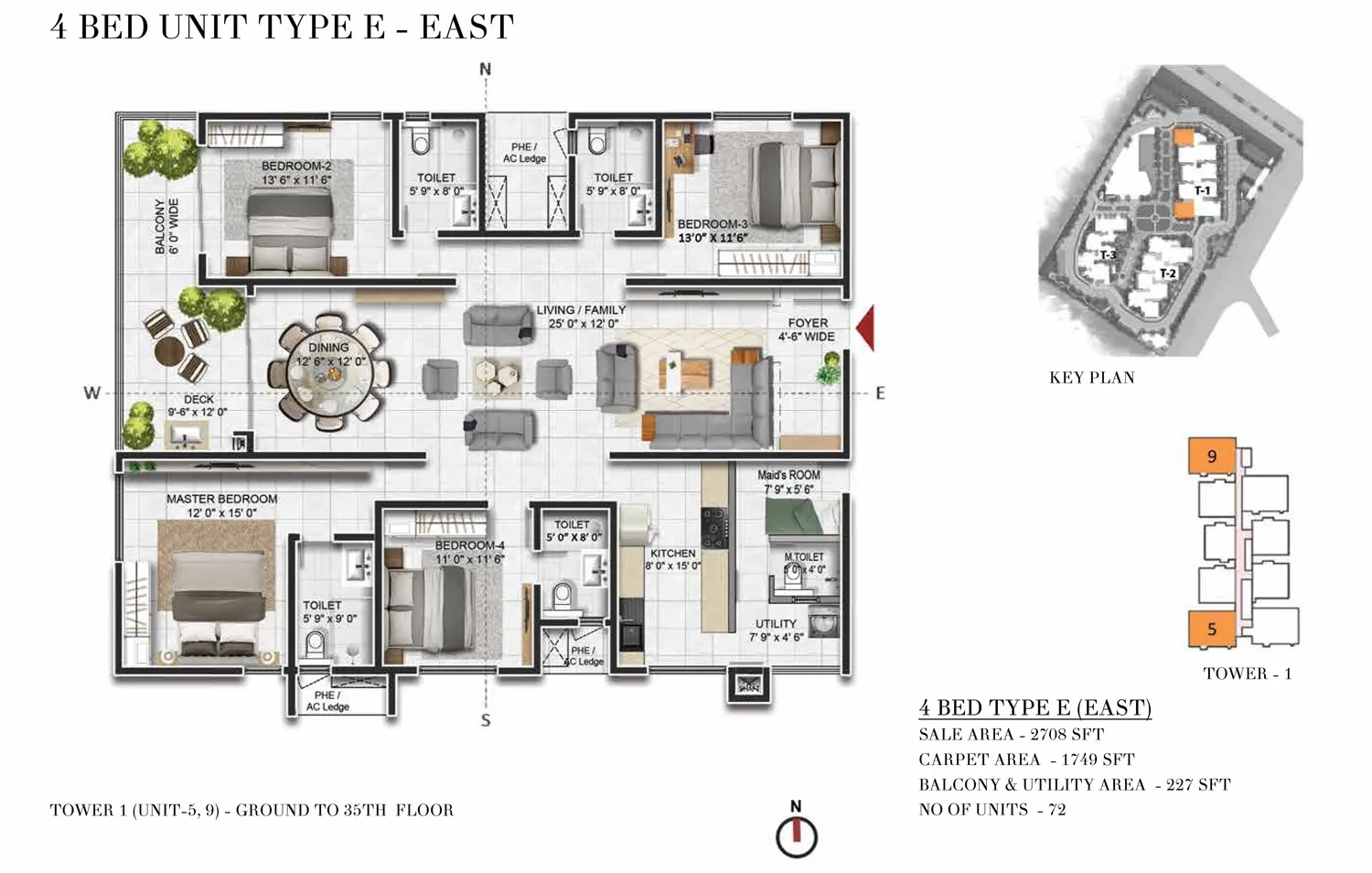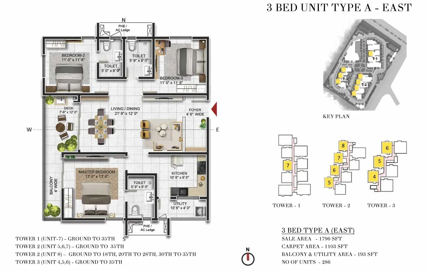 Apartment Flooring: Vitrified tiles in the foyer, living, dining, corridors, all bedrooms, kitchen & utility. Ceramic tiles on the balcony