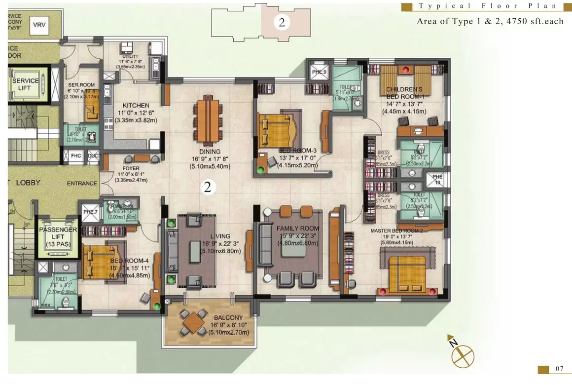 The floor plan of Prestige Edwardian comprises 4 BHK apartments in different sizes. The apartments are spacious, airy and well lit. The carpet area of the project ranges between 4750 sq. ft. and 5855 sq. ft. The price of the apartment begins from 11.5 Cr onwards. The price has been set per the current property rate of the area. The cost sheet of the project is very flexible and offers a proper breakdown of payment. Buyers have to pay for other things at the time of buying the apartment. The flats are affordable and budget friendly. The current market rate of the property in Vasanth Nagar is 17972/sq. ft.