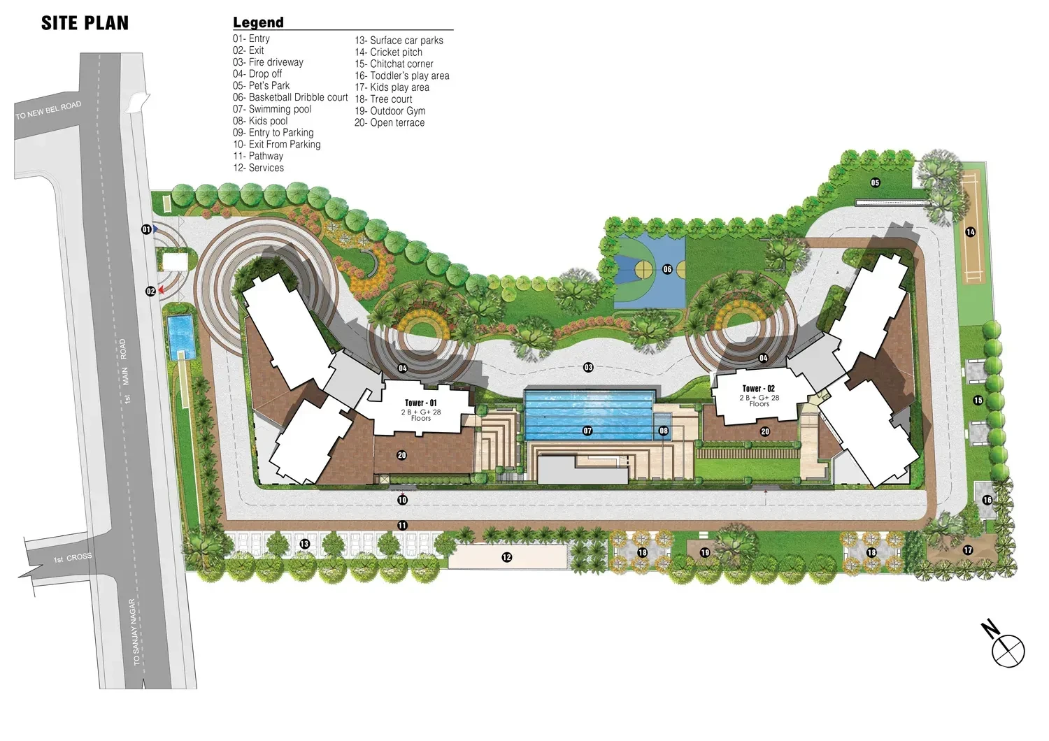 In the plush environs of Raj Mahal Vilas extension, Sanjay Nagar, popularly known as Dollars Colony in Bengaluru, discover a home that pampers you with luxury like never before. Prestige Fairfield, An elegant enclave of premium residences set in two ground + 28 storey towers that stand majestically tall over the neighbourhood. Spacious, sprawling homes, designed and planned to complement your premium lifestyle. Open on three sides, to provide you magnificent undisturbed views of Bengaluru’s cityscape as well as immeasurable natural light and ventilation. Located for easy accessibility via Bellary Road and New BEL Road situated within ready reach of all necessary social and civic amenities, such as highly reputed educational institutions, healthcare facilities, shopping and leisure hubs, transport terminuses and more. Equipped with all the leisure and recreational amenities that you need for you and your family to stay entertained and healthy, in the manner that you are used to.