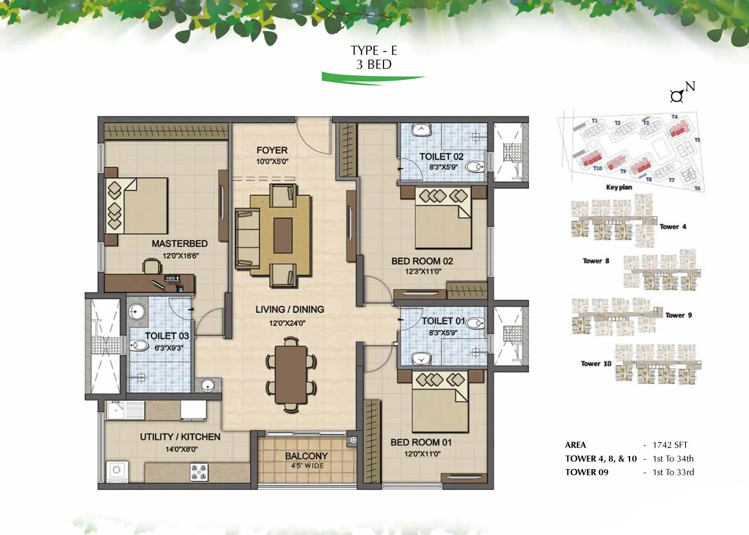 Your leisure hours will be well occupied, with plenty to keep you entertained and fit. You have at your disposal a Clubhouse with a Gym, a Spa, Badminton and Squash Courts, a Mini Theatre, Guest Rooms, a Party Hall, a Restaurant, a Creche, a Boutique, a Library and a Salon. Space has also been set aside for a Supermarket and Pharmacy, and an ATM.