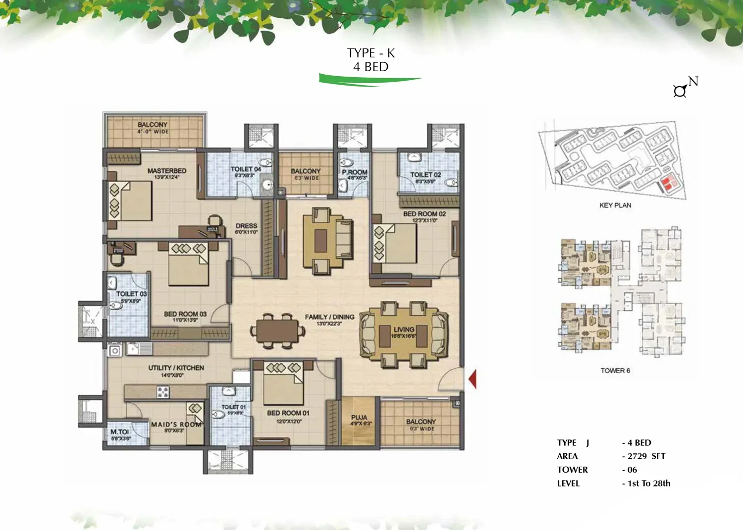- 6.5 KW Power will be provided for 3 Bed Apartments