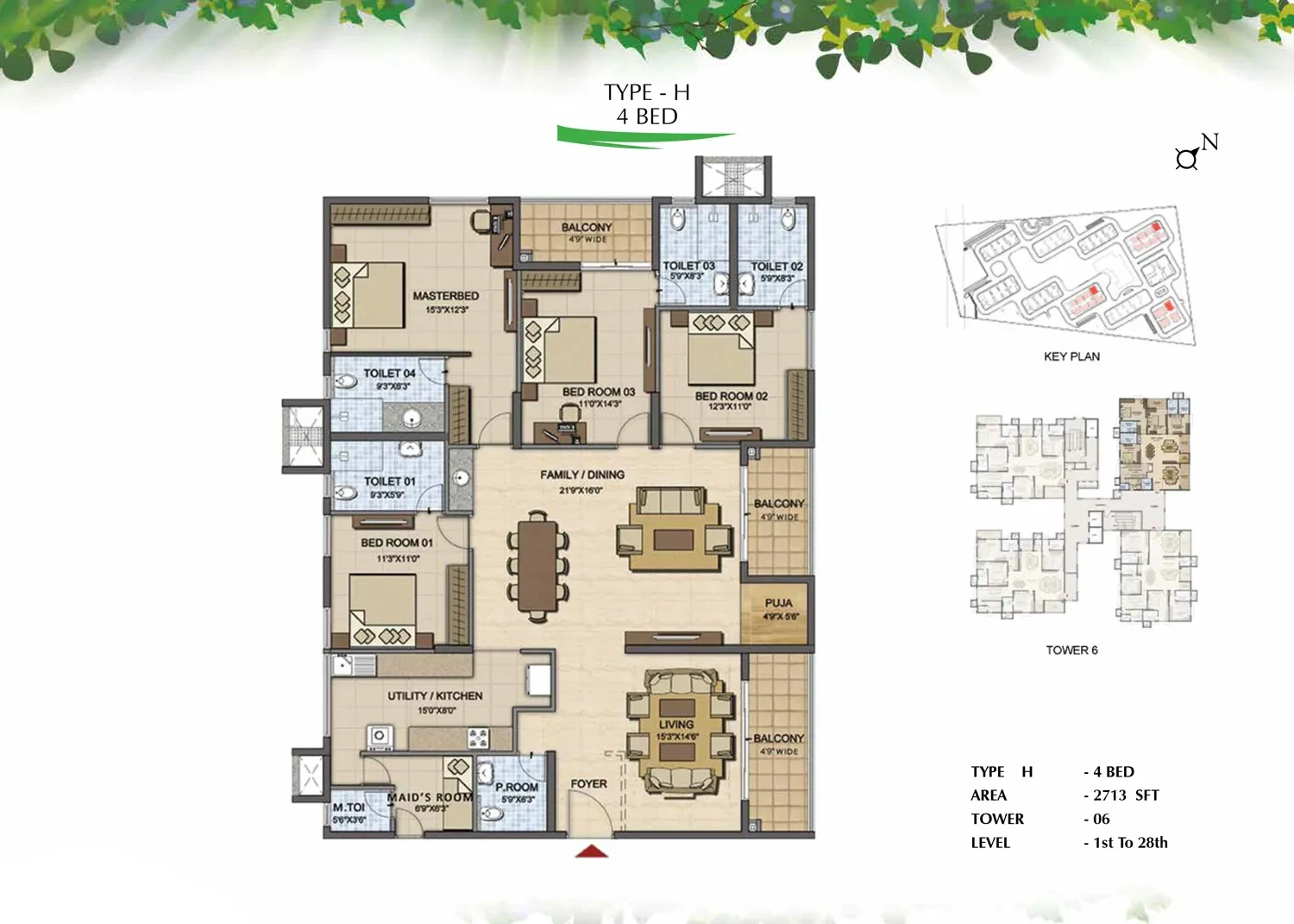 - Vitrified Tiles in the Foyer, Living, Dining, Corridors, Family Area and All Bedrooms