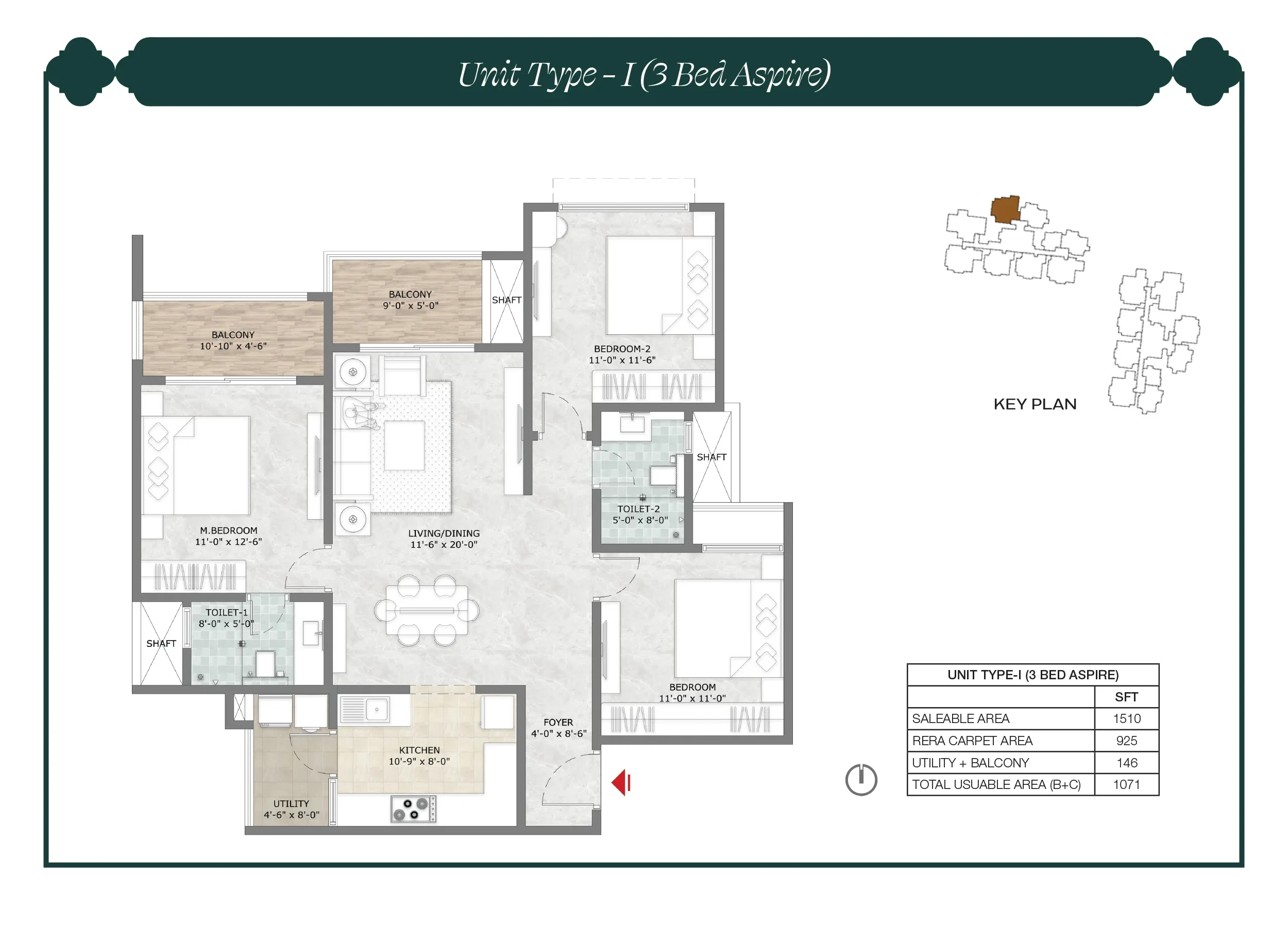 • Lifts of suitable size and capacity will be provided in all towers