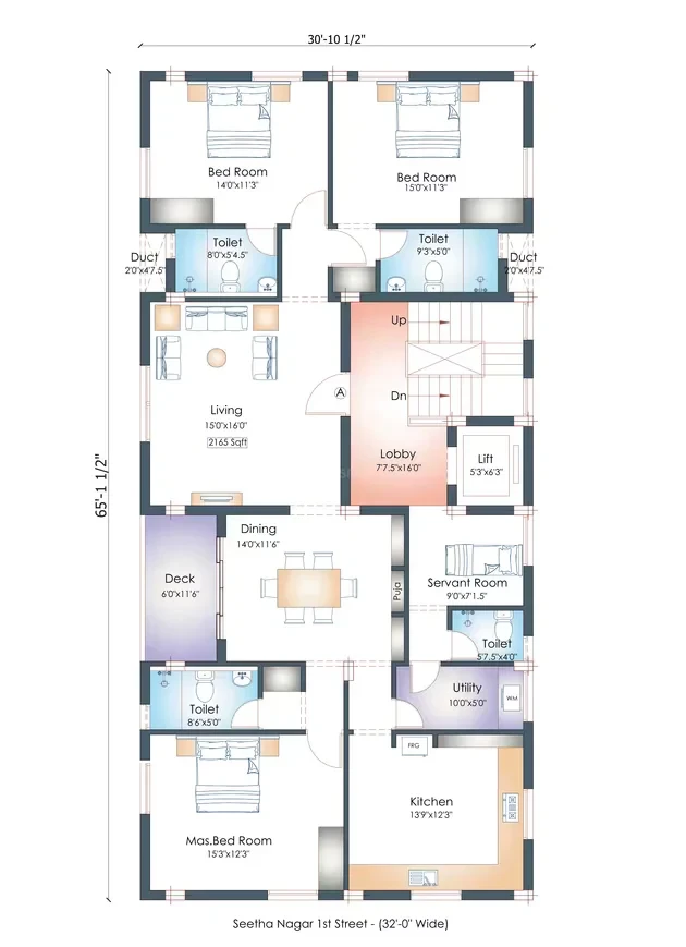The development stands G+4 floors tall and is crafted with contemporary architecture, fine finishes, and a blend of functionality and sophistication. Each residence spans a super built-up area of approximately 2,165 sq.ft, configured as spacious 3 and 3.5 BHK apartments, perfectly suited for modern urban families seeking luxury and convenience.