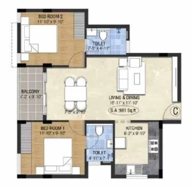- Provision for exhaust fan, refrigerator, and water purifier.
