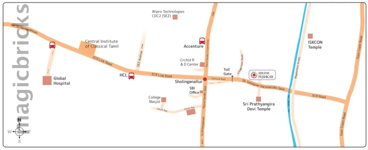 Pushkars Serenity is a contemporary-styled apartment that is located in a prime residential area in Chennai city. Developed by Pushkar Properties, these flats are for sale in Thiruvanmiyur, which is a posh residential area loved by those who want to stay in the city. In total, there are 20 apartments planned in this gated community, and they are all configured as opulent 3 BHK units. The unit size of these flats extends 1393 Sq.Ft and they are a wonderful choice for modern families. These flats all open out to beautiful balconies and come equipped with covered car parks on the stilt level and lift.