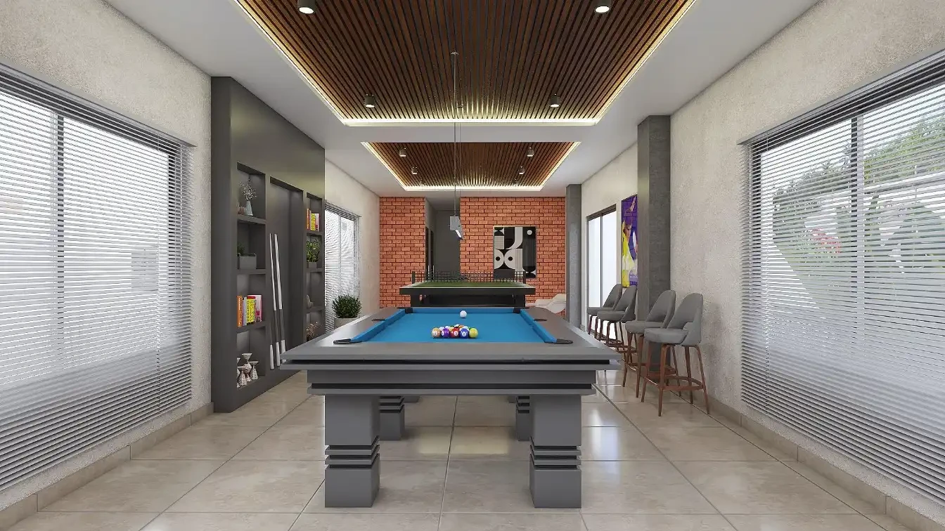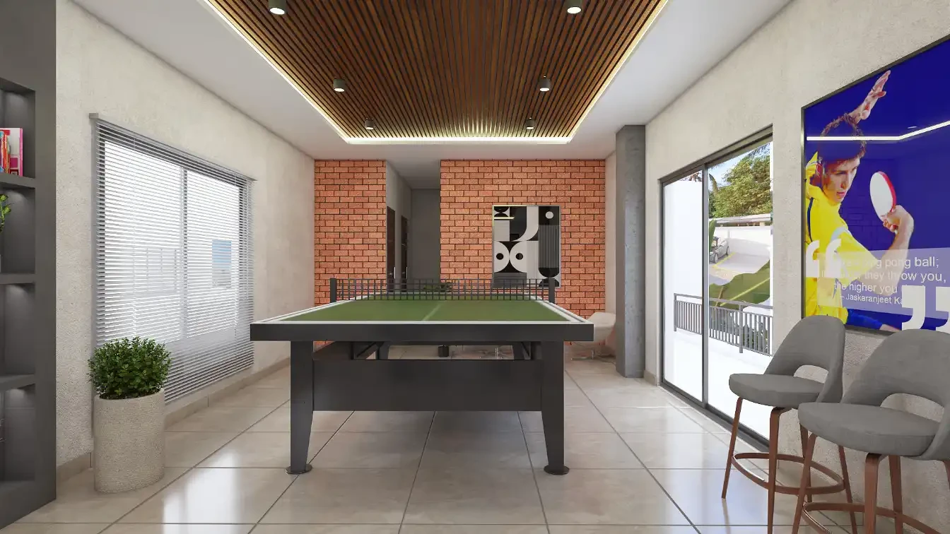 Clubhouse: An 8,000 sq. ft. standalone facility (G+2) offering a gym, swimming pool with deck, indoor games (billiards, table tennis), and a rooftop cafeteria.
