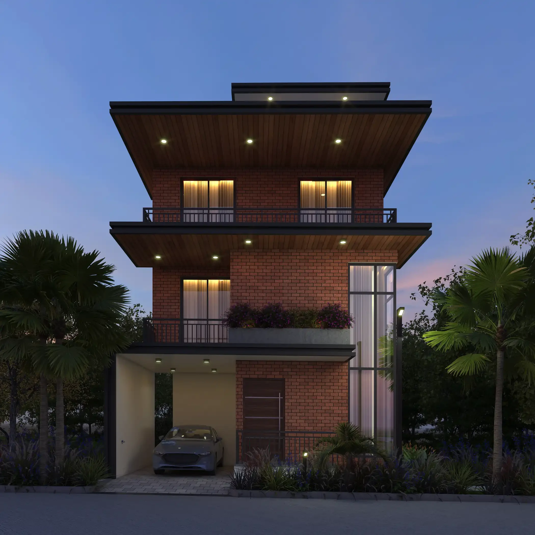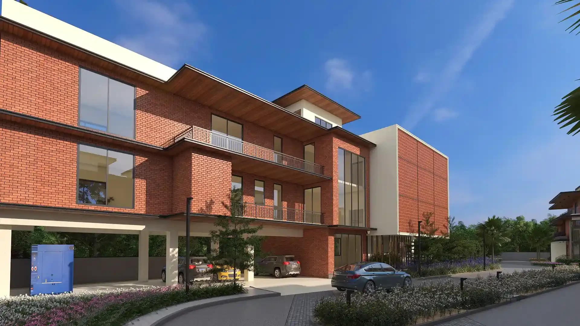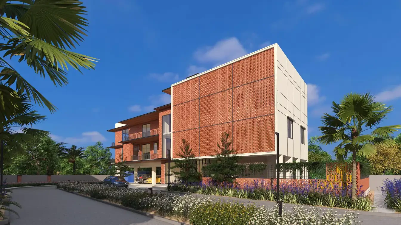 Architecture: Earthy brick facades, double-height living areas, and Vaastu-compliant layouts.