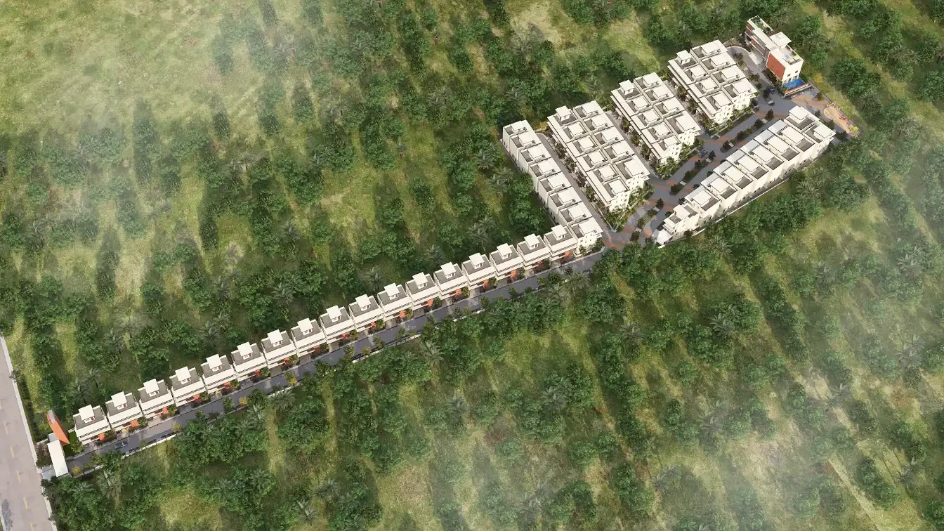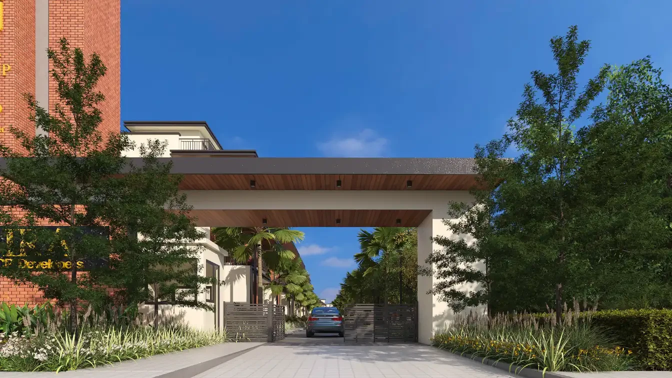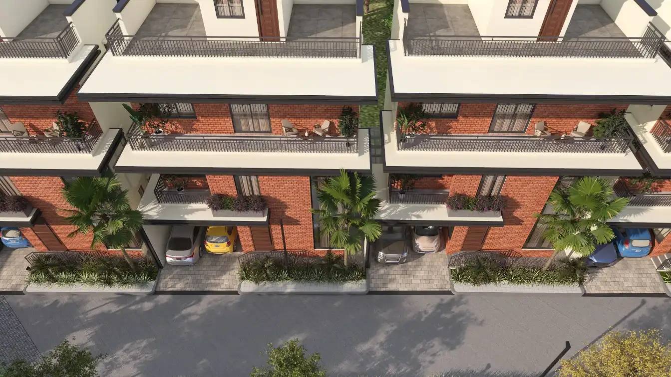Raja IRA is a premium low-density villa community located at Rajankunte, Doddaballapur Main Road, North Bengaluru. Spread across 4 acres, the project features 64 well-planned 4 BHK villas designed for buyers seeking privacy, usable space, and a secure neighbourhood. Each villa includes a private garden, a double-height living area, Vaastu-compliant planning, and elevator provision. With earthy brick-tile façades and architecture, the homes are designed for long-term functionality and comfort. The community offers 62% open space, planned streetscapes, and an 8000 sq.ft clubhouse, making it suitable for premium family living