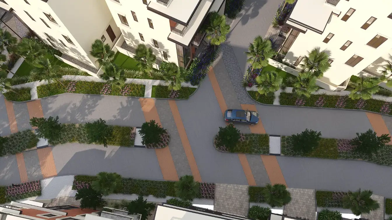 Private Spaces: Each villa comes with a private garden and provisions for an internal elevator.