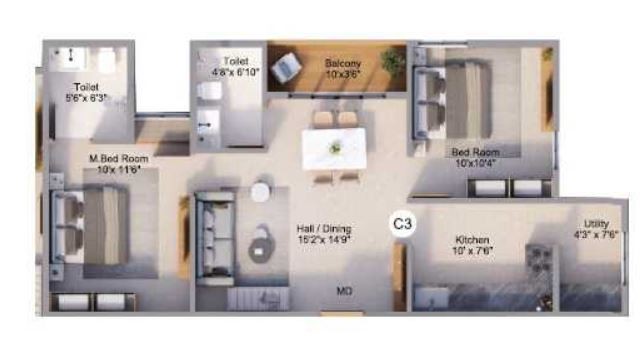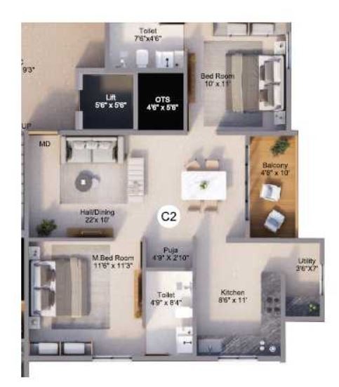Designed with a blend of functionality and style, the interiors feature premium fittings, elegant finishes, and optimized layouts to enhance everyday living. High-quality materials and thoughtful detailing ensure both comfort and durability