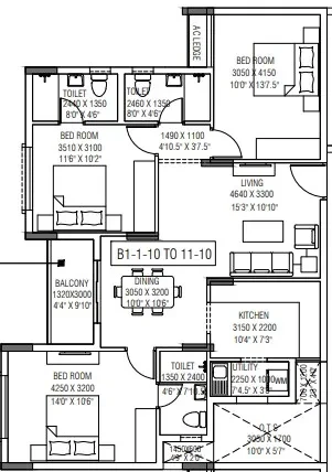 The project is developed with 286 beautiful units of 2, and 3 BHK flats spread across 3 acres’ landscape covered in a unit size ranging 931 – 1379 sq.ft..
