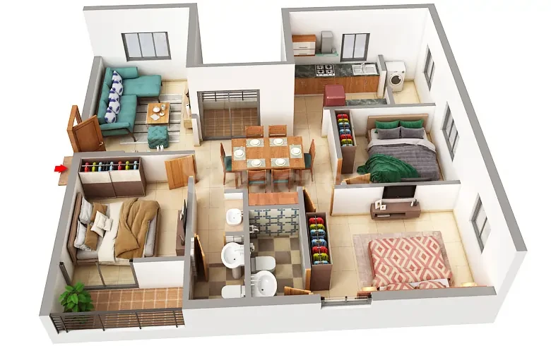 • 2’x2’ Branded vitrified tile for living, dining, bedrooms, kitchen & Balconies.