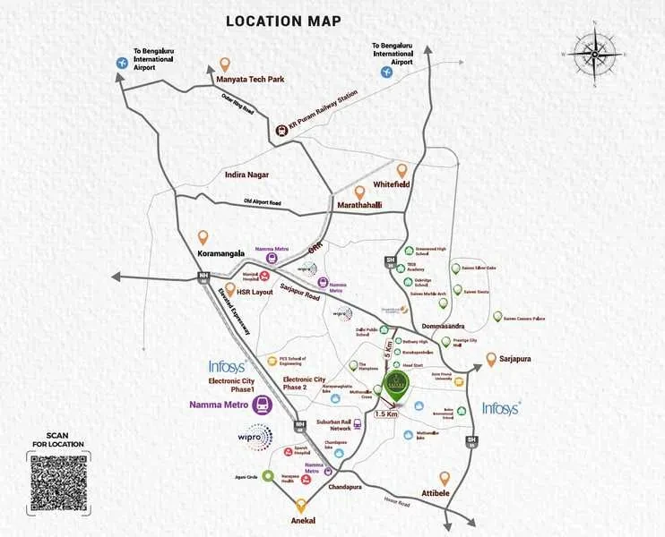 Saiven Mulberry Groves is a premium, low-density gated community of luxury triplex villas developed by Saiven Developers. Spanning 6 acres in the Muthanallur region near Sarjapur Road in South Bangalore, the project is specifically designed to blend sophisticated modern architecture with lush, nature-focused surroundings.