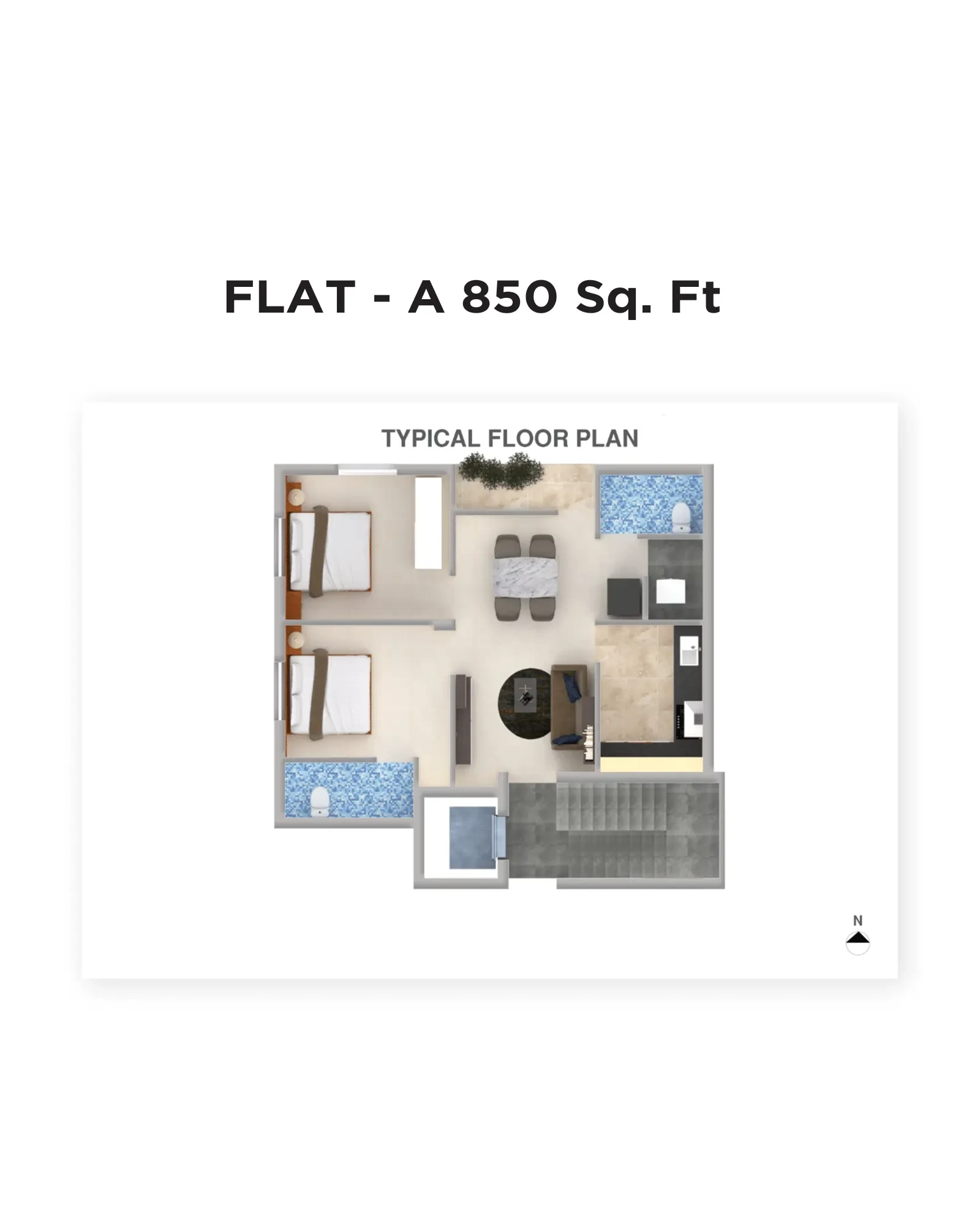 Trident feels like a quiet statement in a city that often leans toward being super loud. Housed in the heart of K.K. Nagar, this understated project by Salma Constructions Pvt Ltd brings together six serenely designed two BHK flats, ranging from 836 to 850 sq. ft. One block. Three floors. That’s it. And that’s enough. The location, too, does its part. K.K. Nagar . Trident lets you enjoy that without overstating it. Schools, essentials, and everyday routines,all within reach, but never overwhelming.