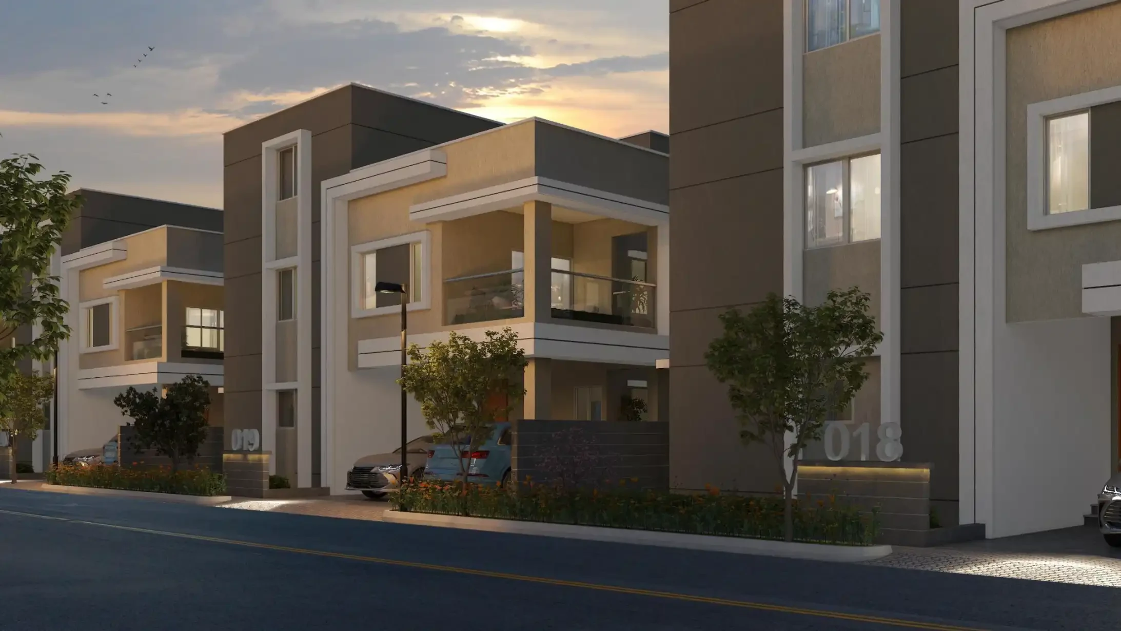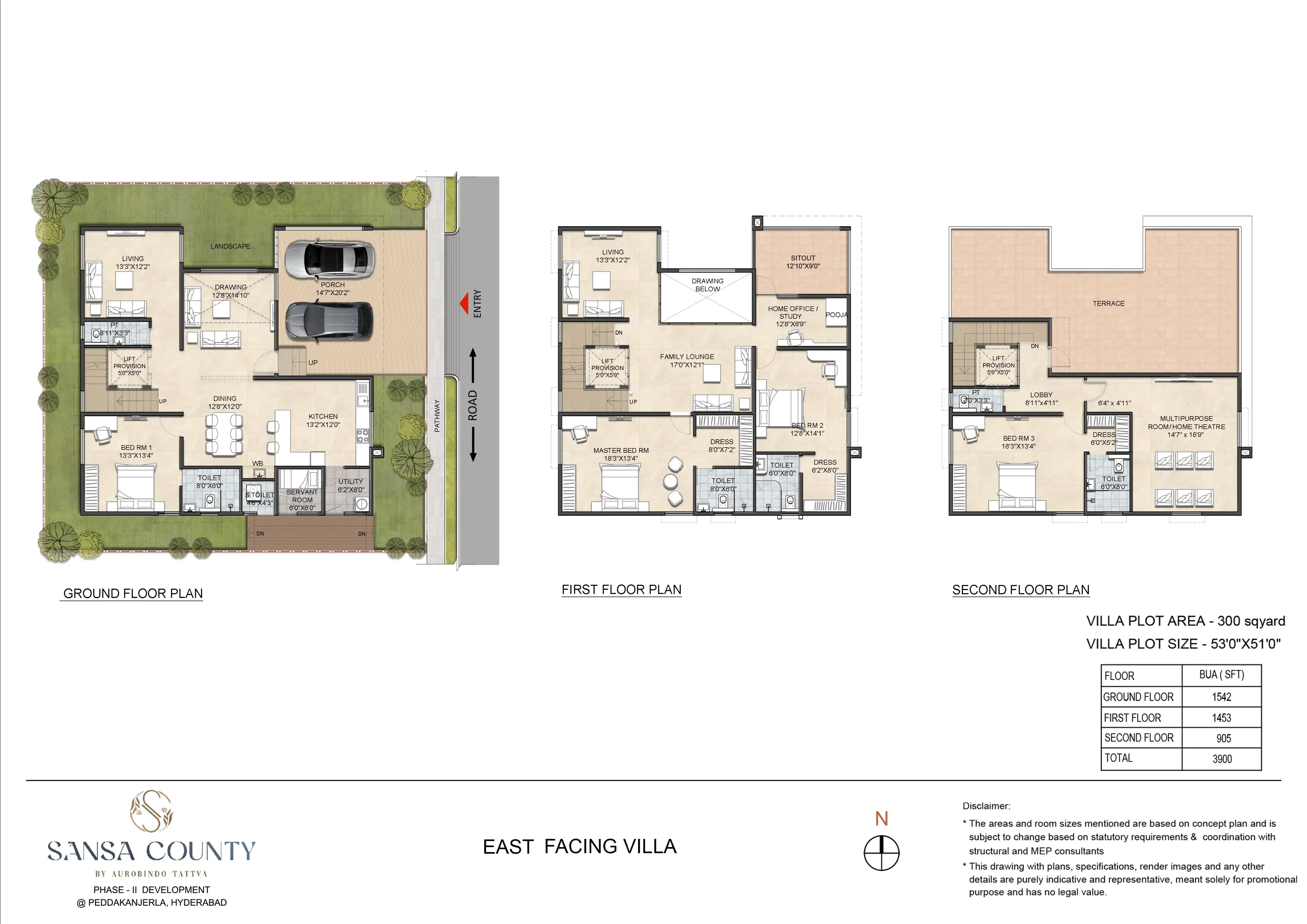 Unit Configuration: Features 437 triplex villas, each built on a 300 sq. yd. plot with a built-up area of approximately 3,900 sq. ft..