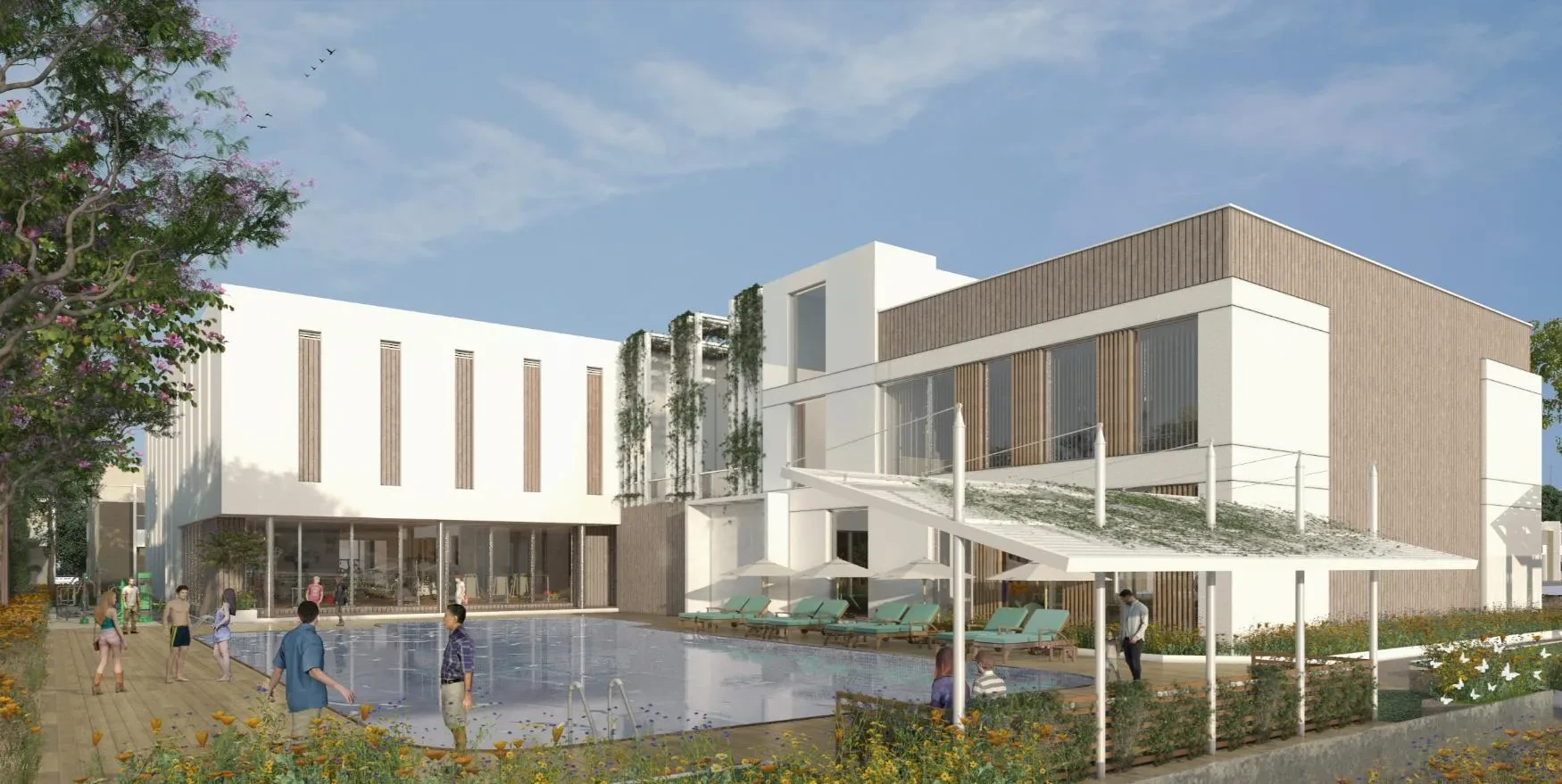 Recreation: Swimming pool, clubhouse, amphitheatre, and an indoor games room (billiards, carrom, table tennis).