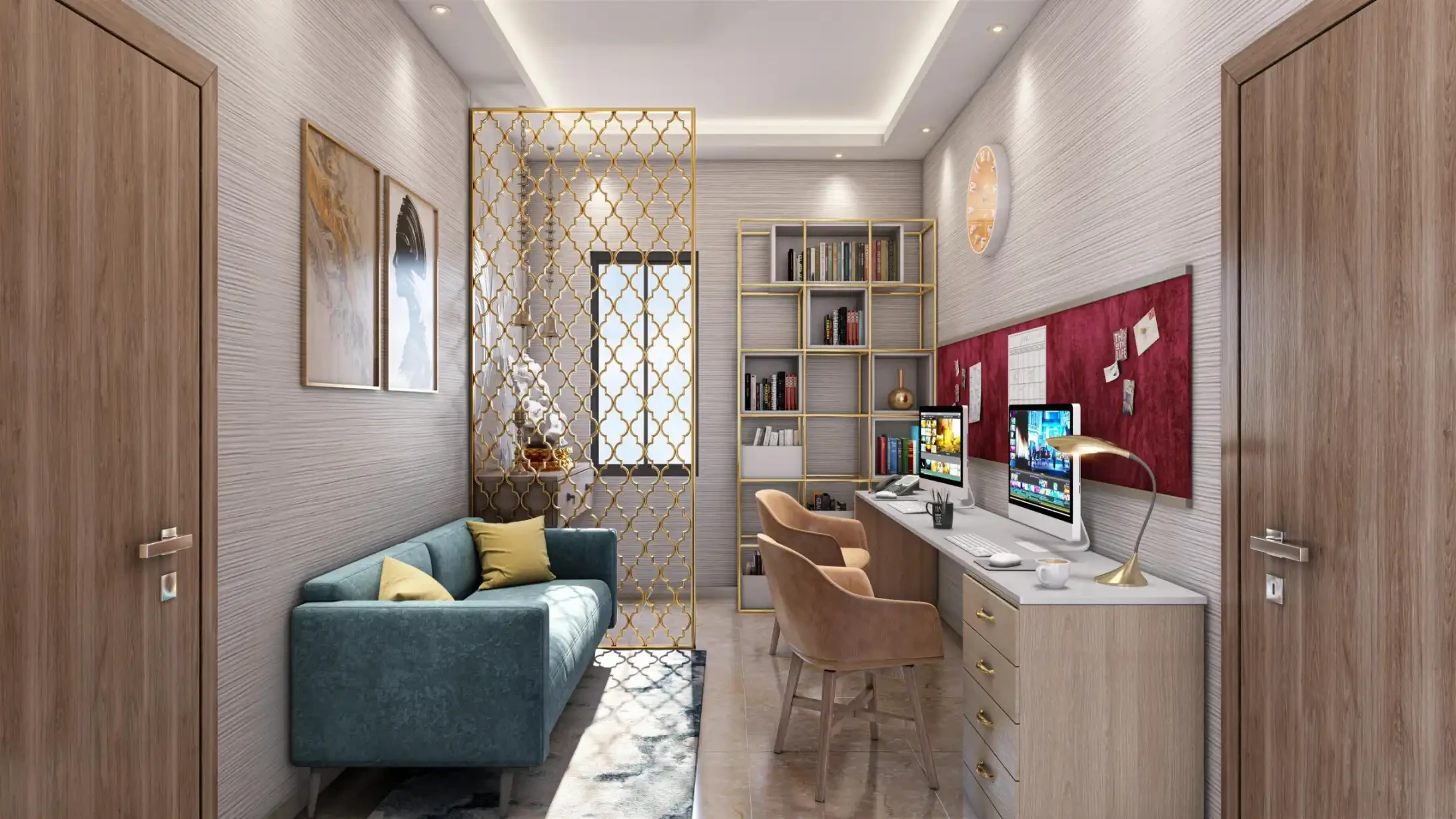 Main Door: Engineered wood frame and Shutter finished with Melamine polish and fixed with reputed make hardware