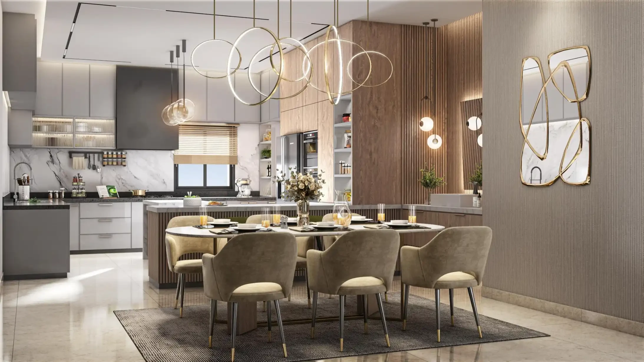 5 power points in kitchen with multi-pin 6/16A sockets (Chimney, Refrigerator, Microwave, Mixer /grinder, and water purifier)