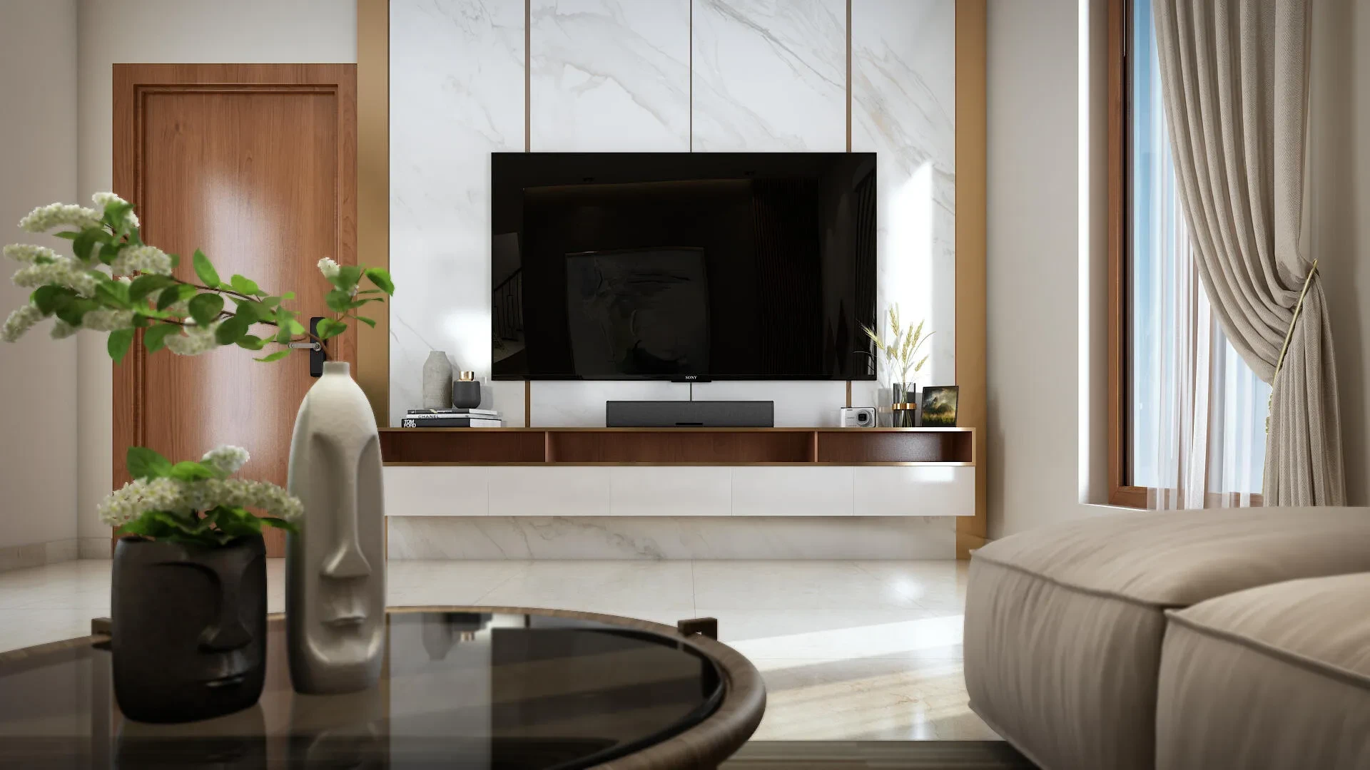 Living & Dining: Italian Marble Flooring with skirting.