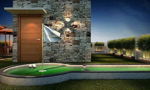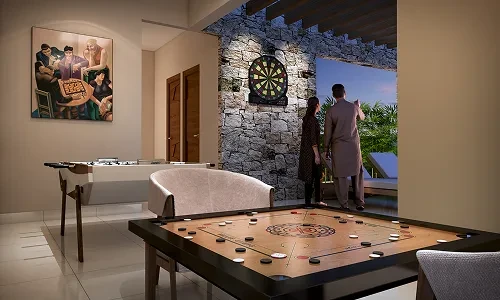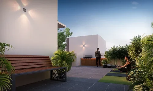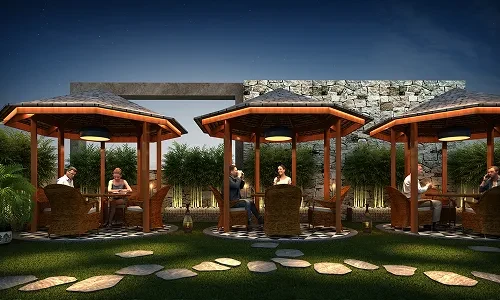Outdoor Spaces: Landscaped gardens, a party lawn, yoga/meditation areas, an amphitheatre, and children's play areas.