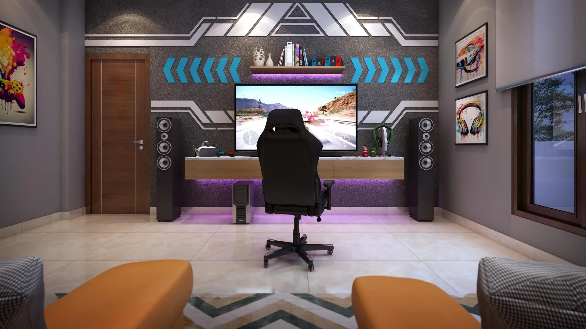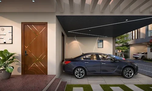 Car Parking: EV Charging port in Car parking, 3 Ceiling light point with lights & Strip lights installed, one 16A socket.