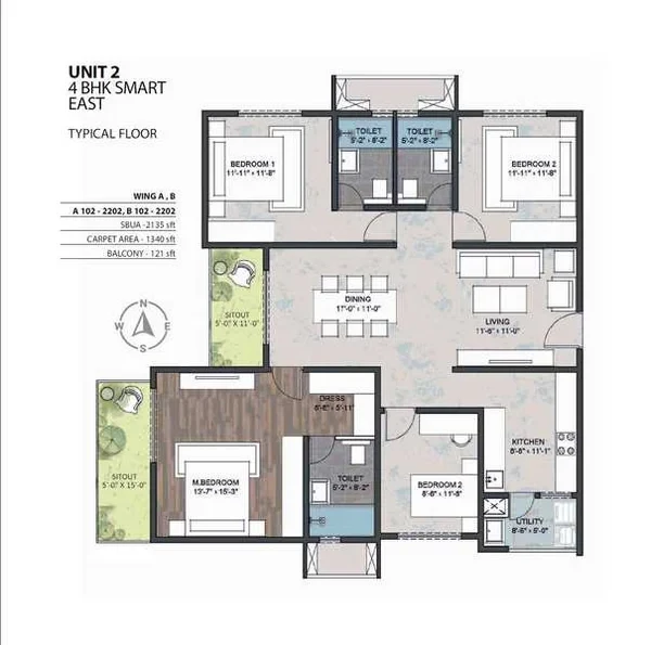 - W'ater inlet/outlet provision in utility area for dish washer (for 4 BHK Smart & 4 BHK Grand only).