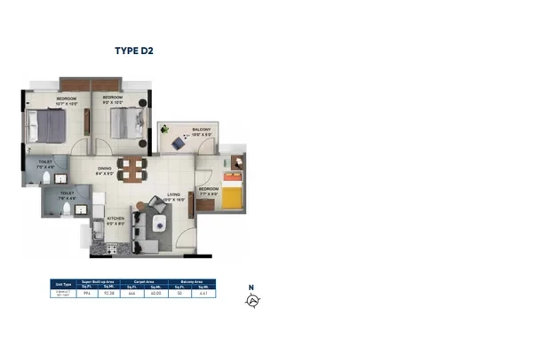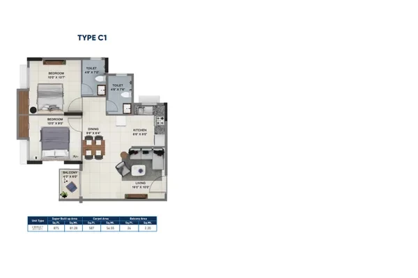 APARTMENT: Foyer: Vitrified Tiles, Living & Dining: Vitrified Tiles, Master Bedroom: Vitrified Tiles, Other Bedrooms: Vitrified Tiles, Balcony: Anti-skid Ceramic Tiles, Kitchen: Vitrified Tiles, Skirting: Vitrified Tiles, Toilet: Anti-Skid Ceramic Tiles.