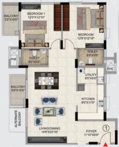It has a majestic elevation with the towers rising up to 14 floors each. The architectural style is contemporary and the homes have highly efficient floor plans. Each and every unit is carefully designed ensuring a very functional layout that maximises space.