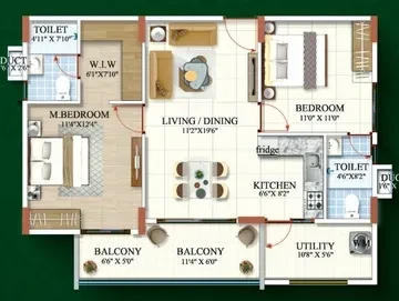 2 BHK: Starting from approximately 980 sq.ft. to 1,201 sq.ft..