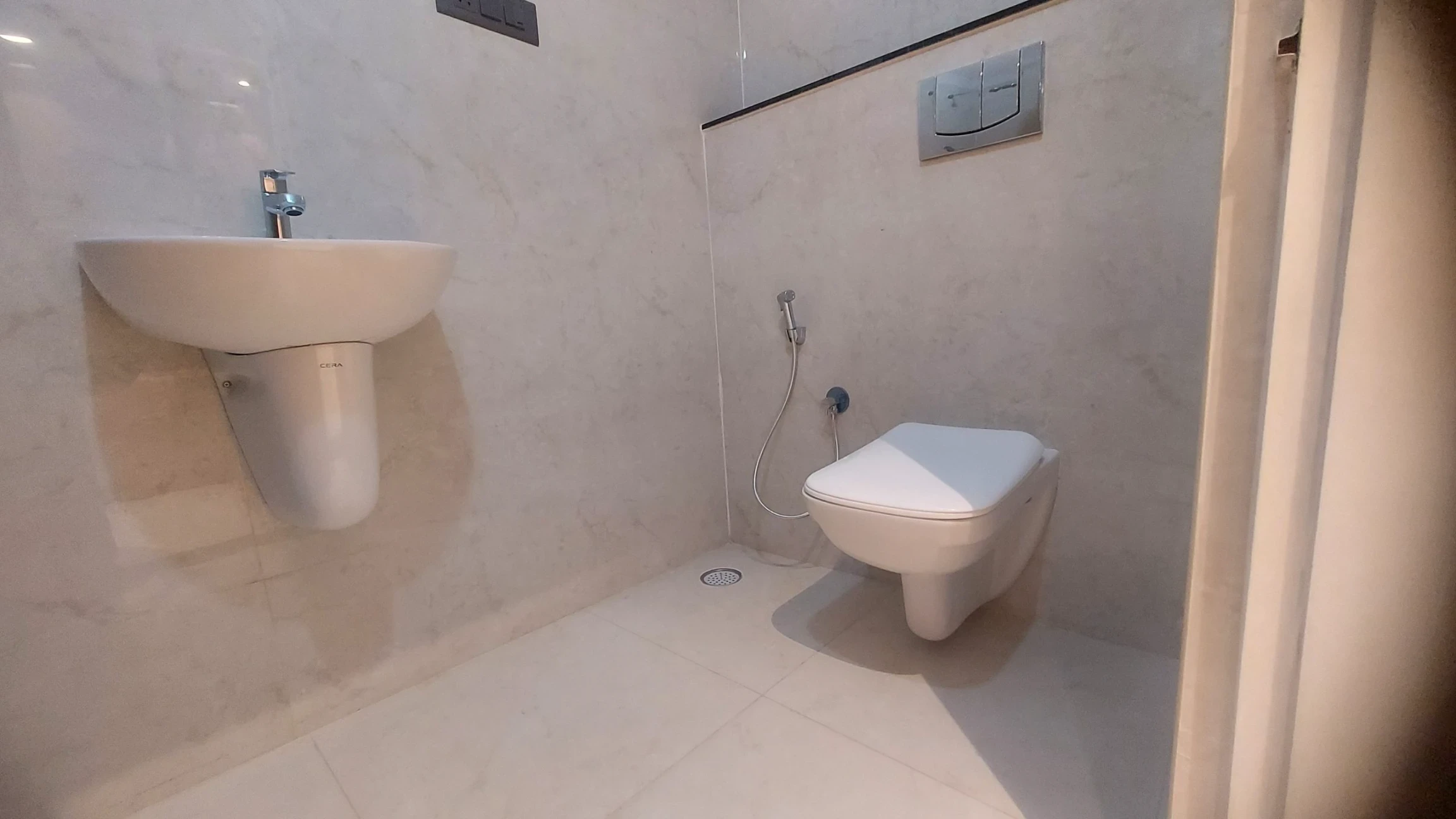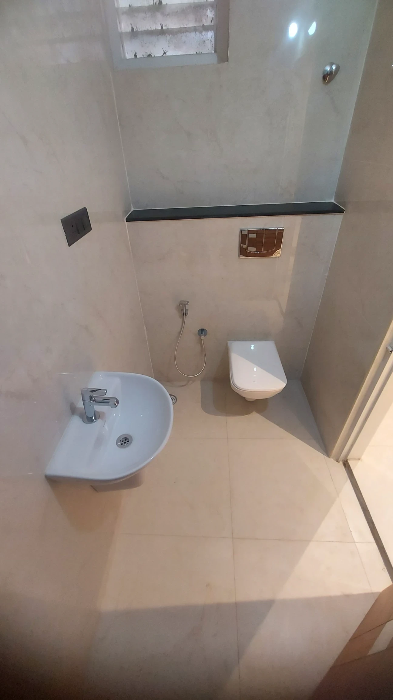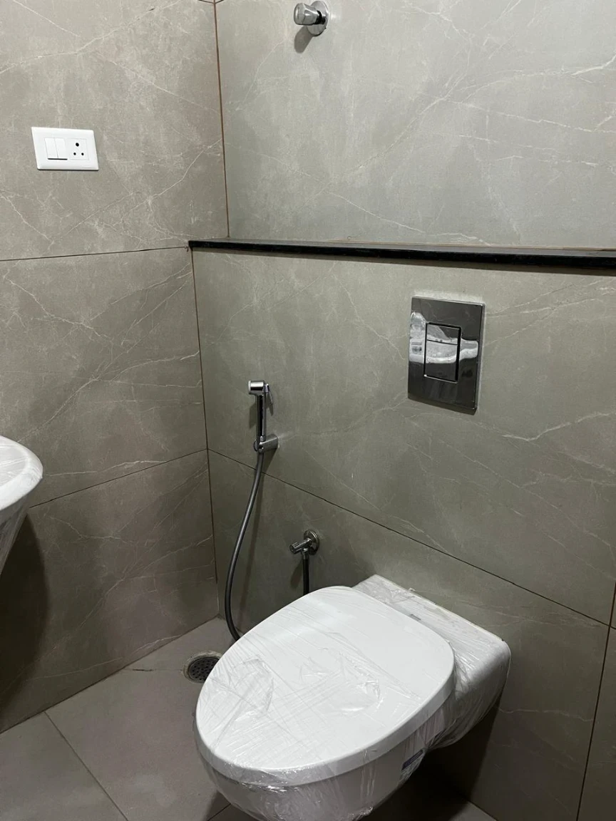 Toilet dado with glazed / ceramic tiles upto 7’ height.