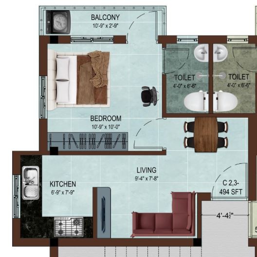 1 BHK 498 & 507 SFT
