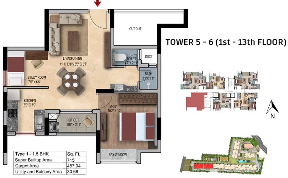 Unit Types: 1, 1.5, 2, 2.5, 3, and 4 BHK premium residences.