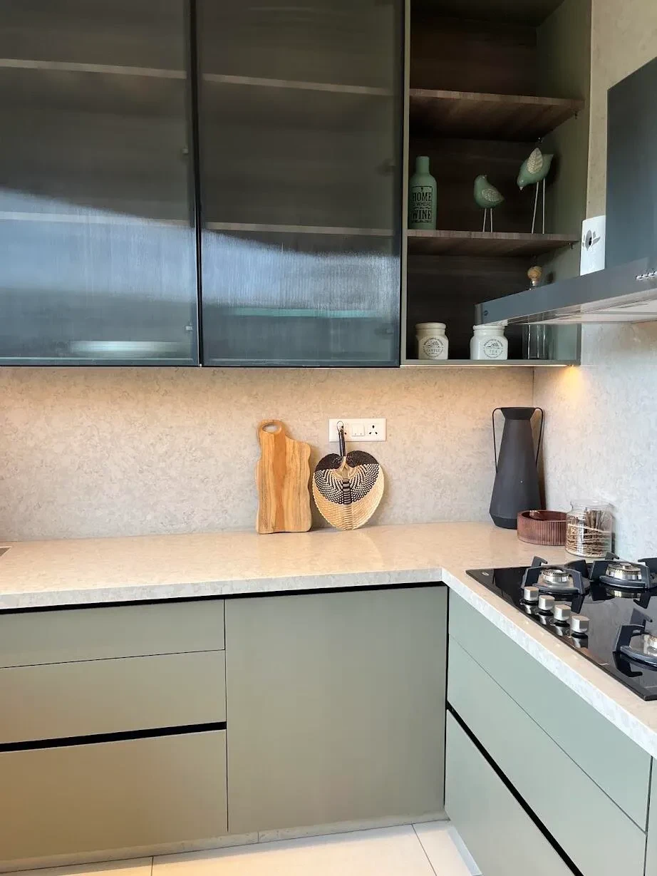 Ceramic glazed tile dadoing in Kitchen for walls above the counter level upto 2'0"height.