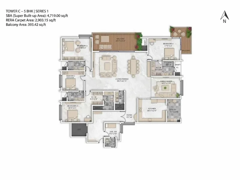 The SNN Raj Bay Vista is intelligently designed and currently under development, offering spacious living spaces ranging from 1235.00 sq. ft. to 4719.00 sq. ft. Each unit is thoughtfully planned to provide privacy and exclusivity for its inhabitants, making it a perfect place to call home.