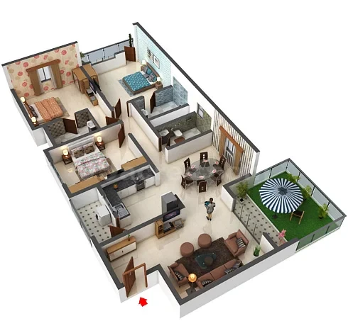 The development emphasizes quality construction, contemporary interiors, and luxury finishes, providing residents with a comfortable and elegant living experience. Unit sizes range from 1,800 sq.ft. for 3 BHK apartments to over 4,387 sq.ft. for penthouses, catering to diverse family requirements.