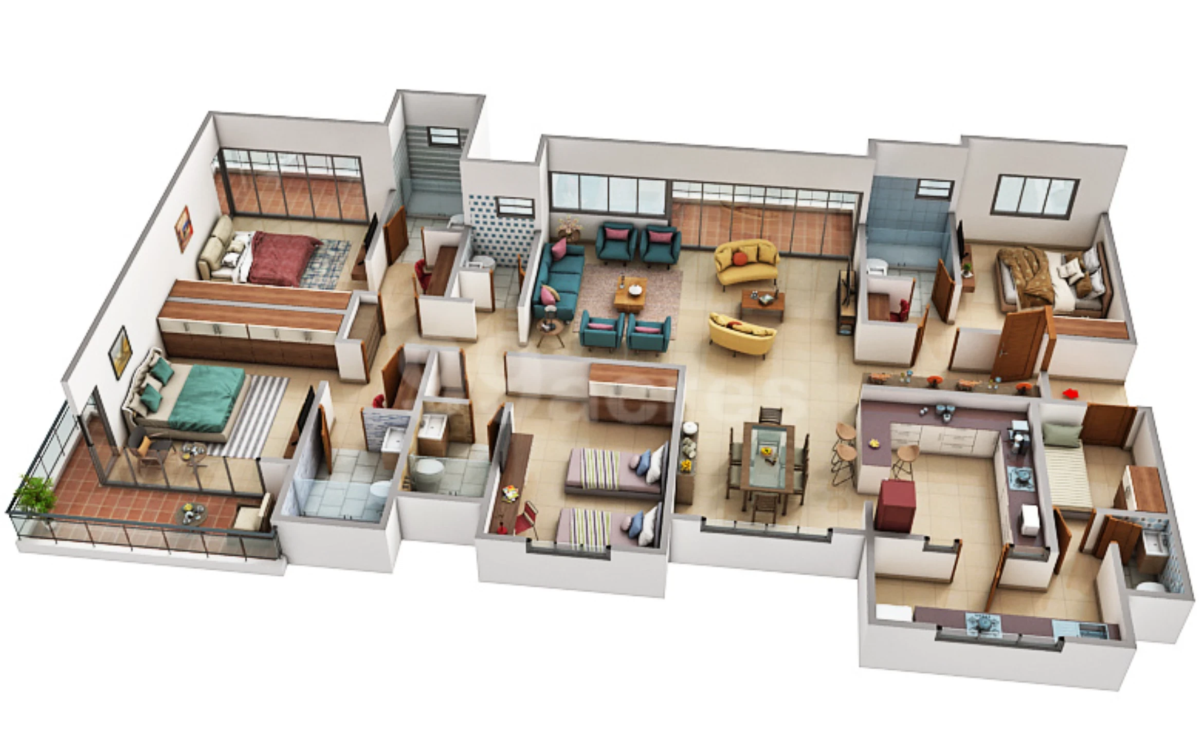- Living/Dining: Imported marble or high-quality vitrified tiles.