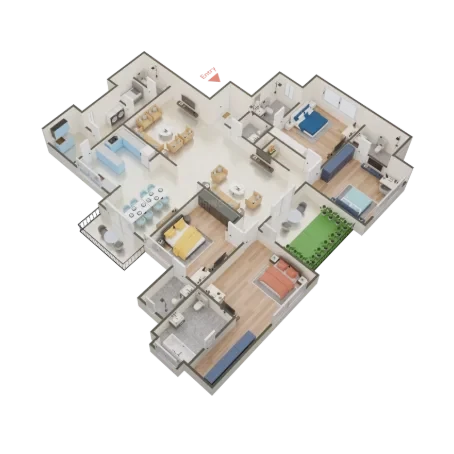 Living/Dining & Bedrooms: Vitrified tiles (or premium flooring in master bedrooms)