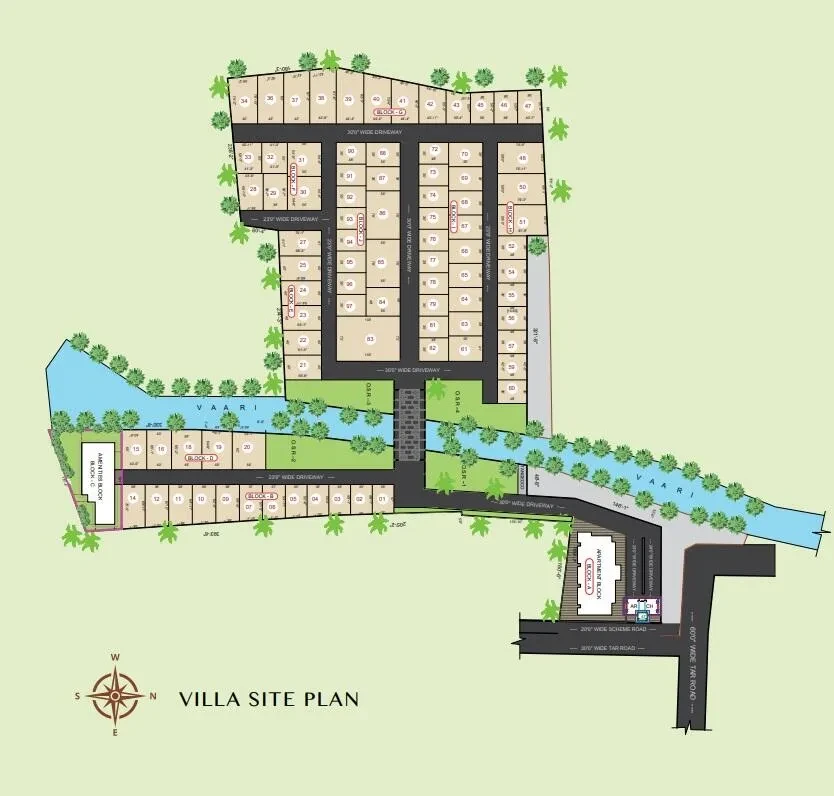 ELECTRICAL: Each house provided with three phase power supply, concealed wiring plate modular ISI approved make wires with necessary circuit breakers and earthing & UPS power back up provision.