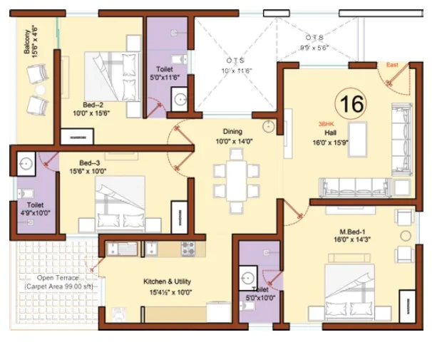 3 BHK: 1,518 sq. ft. to 1,961 sq. ft..