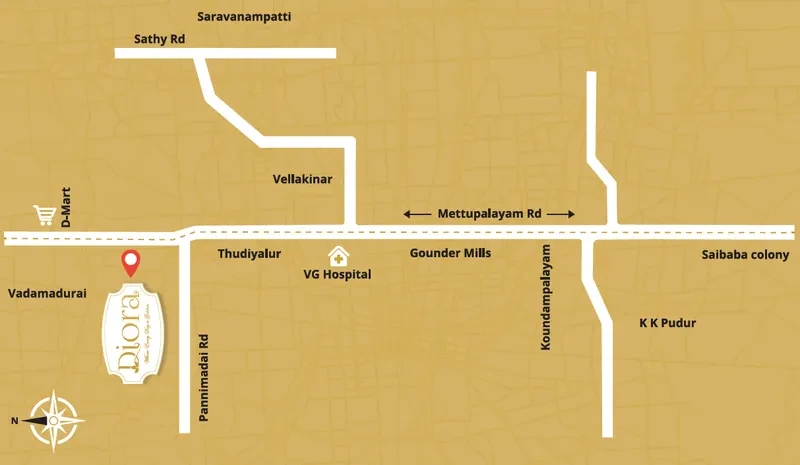 Sree Daksha's Diora is a premium under-construction residential apartment project by Sree Daksha Property Developers in Thudiyalur, Coimbatore. The project is designed with a focus on luxury and modern amenities, spread across 2 acres of land.