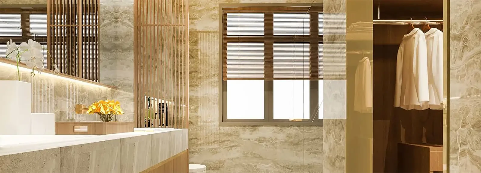 TOILET WALL TILES: Wall tiles upto 7’ height with glazed tiles.