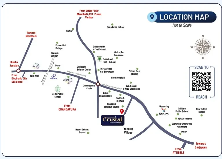Location: The project is situated at Chambenahalli Gate, Sarjapur Main Road, Dommasandra, Bangalore East, Karnataka, with pincode 562125. It is in a prime location close to IT hubs, with essential facilities like hospitals and schools nearby.