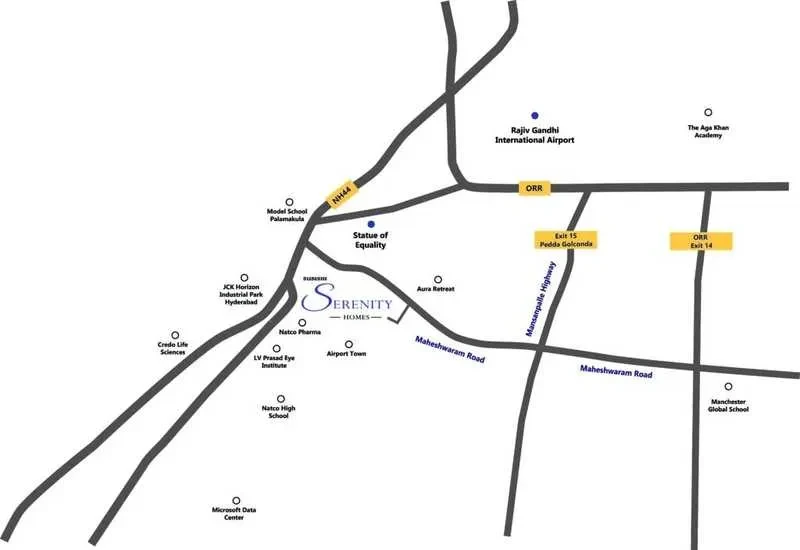 Location: Situated in Toopra Khurd, near Maheshwaram, conveniently close to Hyderabad International Airport.