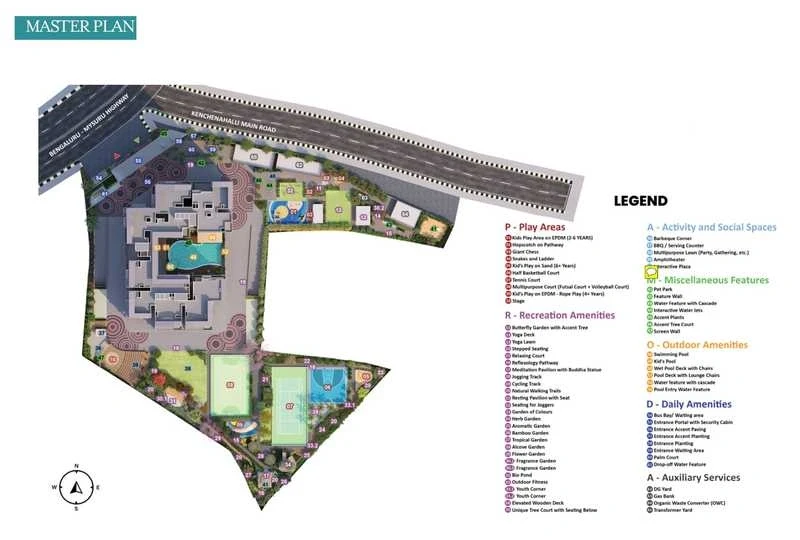 Location: Situated in Kenchenahalli, RR Nagar, approximately 1 km from the Jnanabharathi Metro Station and near Mysore Road and NICE Road.