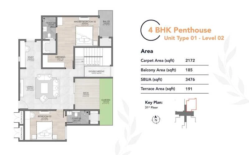 Unit Types: It offers spacious 3 BHK apartments and ultra-luxury 4 BHK penthouses.