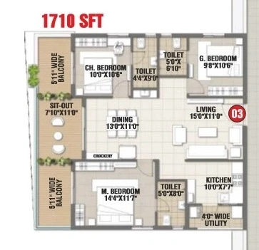 Balconies/Sit outs: Premium vitrified/ceramic tiles of reputed make.